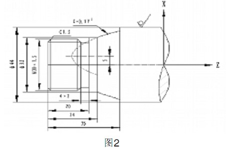 由于數(shù)控系統(tǒng)把平行于主軸的那根軸定義為Z軸 因此針對曲線方程要將其坐標進行轉換 才能讓編程者方便上手 也不會使編程出錯 如下圖2所示