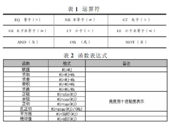 運算符右邊的表達式可包含常量 或由函數或運算符組成的變量 表達式中的變量 #j 和 #k 可以用常數賦值 左邊的變量也可以用表達式賦值 函數正弦 余弦 正切 反正弦 反余弦和反正切的角度單位是度( ) 括號最多可以嵌套使用 5 級 包括函數內部使用的括號