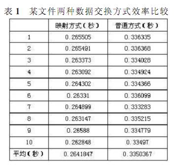 表 1 所測試的文件約 500 行 從數據可以看出 使用緩沖區映射方式 所花費的時間只有使用普通方式 用 DeviceIOControl 交換 的 78.85% 效率明顯提高
