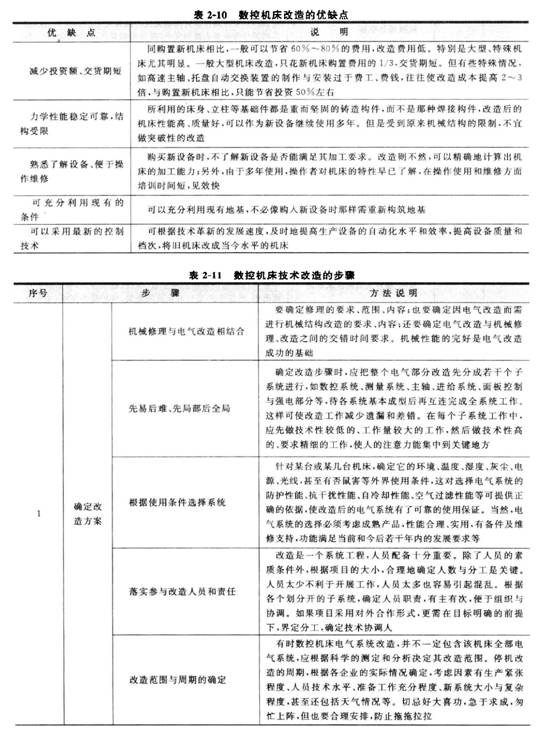 ①數(shù)控機床改造的優(yōu)缺點,如表2-10所示。
