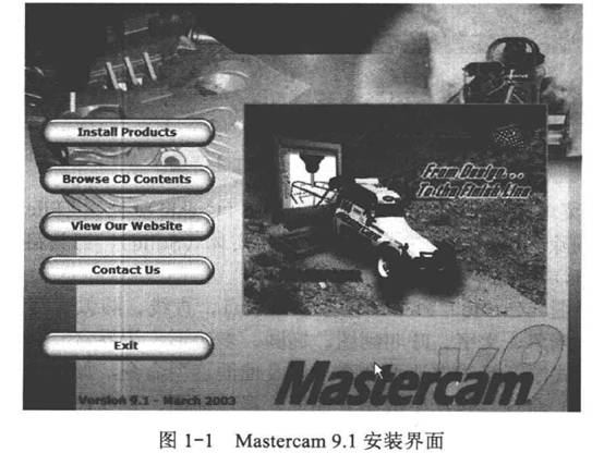 雙擊光盤Mastercam 9.1目錄下Setup.exe文件,啟動(dòng)安裝界面,如圖1-1所示。